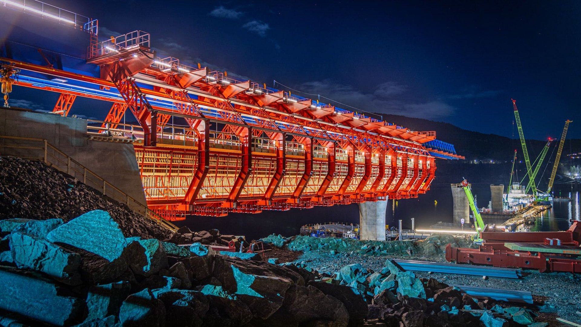 Seit 2022 baut Implenia Norwegen die zweigleisige Tangenvika-Eisenbahnbrücke, die Espa und die Halbinsel Tangen miteinander verbinden wird. Mit ihren 1042 Metern wird sie die längste jemals in Norwegen gebaute Eisenbahnbrücke sein.