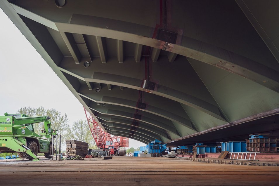 Dann können wir die Elbe überqueren und unsere endgültige Lage erreichen. Es braucht also viel Geduld und wichtige Meilensteine während der einzelnen Verschübe, die wir erreichen müssen. Das ist das Spannende an dieser Stahlbauaufgabe.