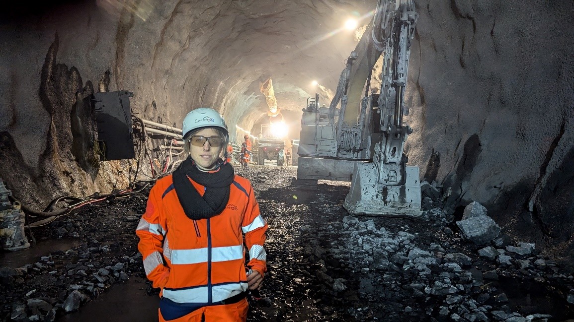 Ombeline Bredow, Kommunikationsleiterin der Baustelle CO08, am Eingang zum Basistunnel der Baustelle Lyon-Turin